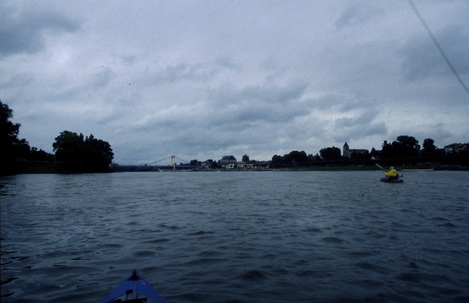 Wir passierten Pouilly sur Loire inzwischen vollvermummt mit Kajakjacke. Bald darauf trafen wir den Faltkajakfahrer wieder, und wir bekamen weitere Ausführungen über 36 Ehejahre zu hören.