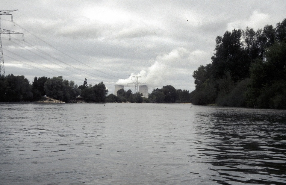 Am nächsten Tag nahmen wir uns wieder zusammen und los ging es. Das Kernkraftwerk schien zwar nahe zu sein, aber es zog sich doch länger hin als wir dachten. Die auf unserer Karte eingezeichneten Abzweige konnten nicht befahren werden, ausser wir hätten den Bootswagen montiert. Doch dann kam ein weiterer, mit einem Schild bezeichnetem Seitenarm, dem wir folgten. Hier hatte eindeutig ein Bagger aus der Sandbank diese Fahrrinne ausgehoben.