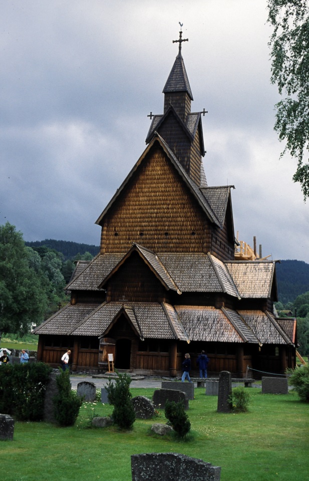 unsere erste (hoffentlich nicht letzte) Stabkirche: Die Stabkirche von Heddal. Hier zahlen wir gerne den Eintritt und sehen uns die Kirche genau an.