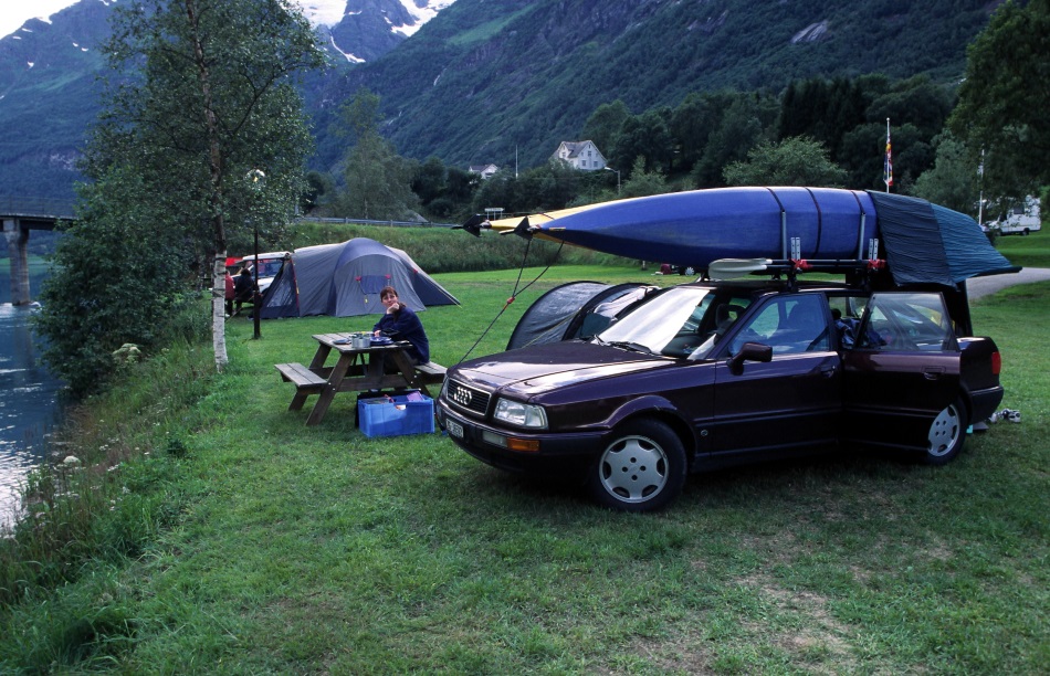 Aber jetzt erstmal wieder chronologisch: gestern Nacht gab es ein gigantisches Gewitter, das dann aber recht abrupt aufhörte. Dummerweise sind wir am nächsten Morgen nicht gleich losgefahren, als es noch nicht regnete und es verhältnismässig trocken war, sondern warteten gemächlich bis der Regen losdröhnte, um dann endlich in Fahrt zu kommen (grummeln und so weiter wie gehabt). Besonders ereignisreich war die Fahrt diesmal nicht, man gewöhnt sich so langsam an hohe Berge, Wasserfälle allenthalben, enge Passstrassen und dunkle, enge Tunnels. Auf einem Pass haben wir Kaffe und Spiegeleier mit Speck in einem kleinen Rasthaus gegessen und beim Nordfjord lagen zwei ‘Pötte’ vor Anker, die Berlin und die Costa Europa. Das sieht schon heiss aus, die grossen Schiffe mitten in der Landschaft. Morgen machen wir eine Gletscherwanderung, und wenn Zeit bleibt, dann werde ich auch noch am Nachmittag mal auf dem Gletschersee mit dem Kajak eine Runde drehen.