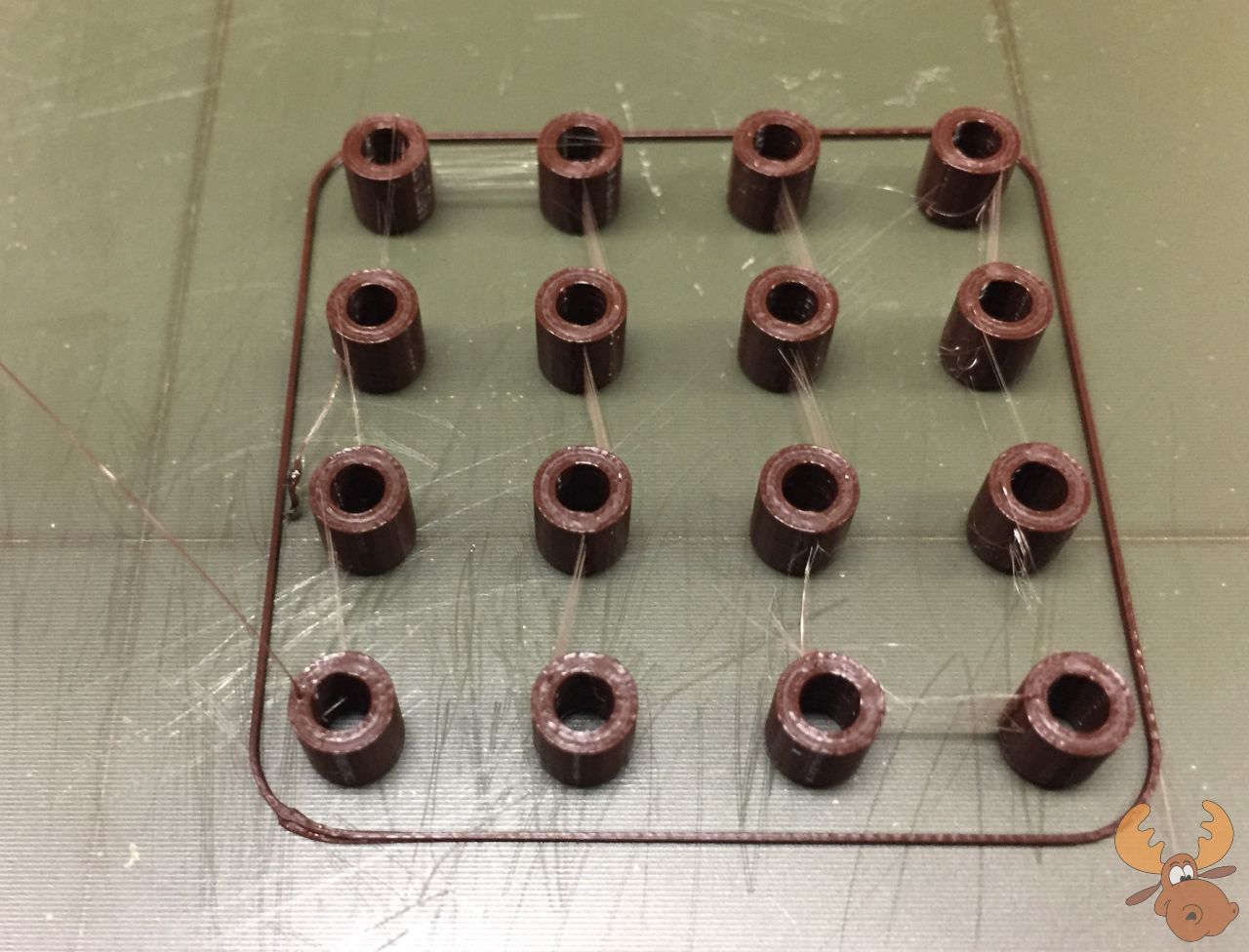 - Distanzhülsen habe ich nicht gefunden, also selber welche designen und drucken. Mit Konstruktion bin ich nicht gut, aber eine Distanzhülse habe ich hinbekommen 😉. Ich habe das mit PLA gedruckt, da das Filament gerade geladen war - hat etwas “stringing” gegeben, aber das ist hier nicht tragisch.