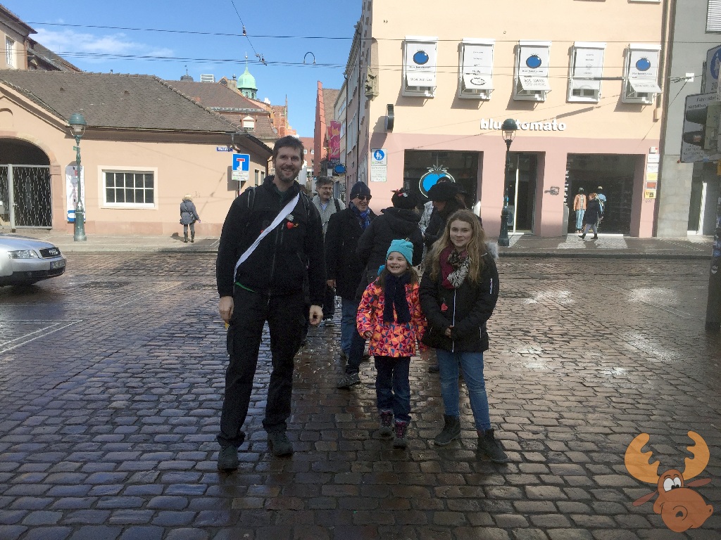 Herr Zimmermann hat sehr unkompliziert auf unser späteres Erscheinen reagiert (das Dessert dauerte etwas länger). Die Tour “Vorsicht Bächle” war auf jedenfall sehr spannend - leider hat er mit einigen mir bekannten Legenden aufgeräumt, die ich natürlich auch so verinnerlicht hatte :-). Die Führung war auf jedenfall sehr kurzweilig und interessant - es hat allen sehr gut gefallen.