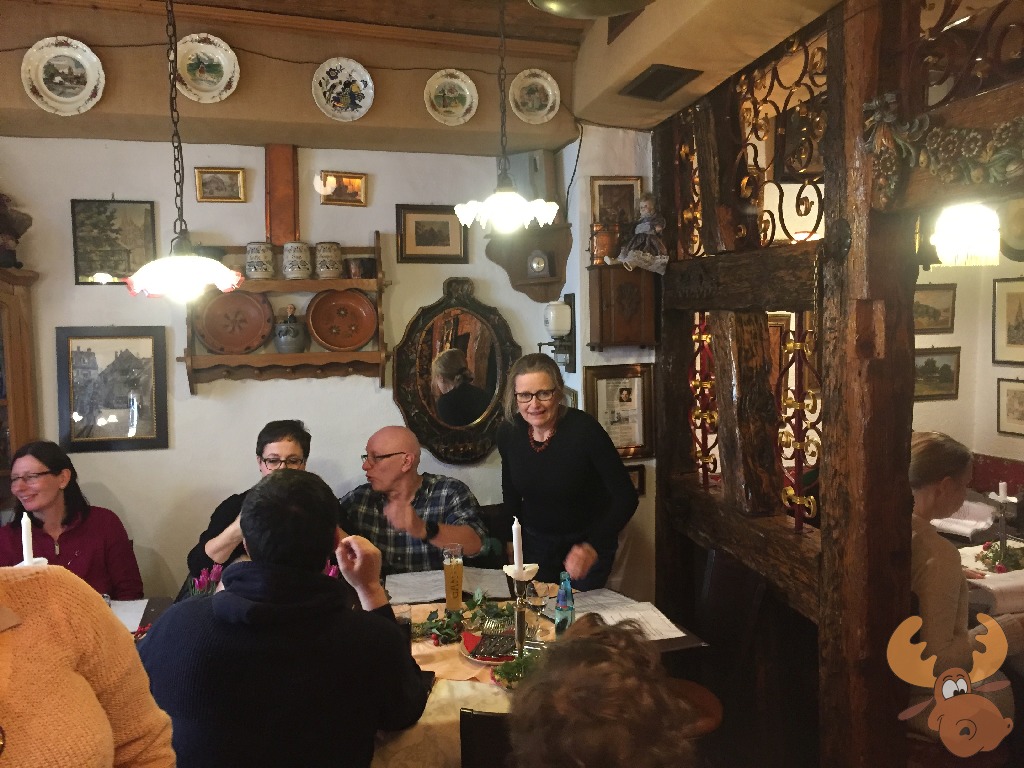An diesem Sonntag hat der SC Freiburg gegen Bayern München gespielt und die Restaurants waren mehr als voll. Vor uns hat dann eine Gruppe versucht “unsere” Reservierung zu “stehlen”. Die haben also tatsächlich dem Wirt gesagt, dass sie die reserviert hätten und sie (auf Nachfrage) “die 13” wären. Habe ich dann berichtigt, und da es noch Platz hatte, konnten wir ohne Probleme unsere Tische belegen.