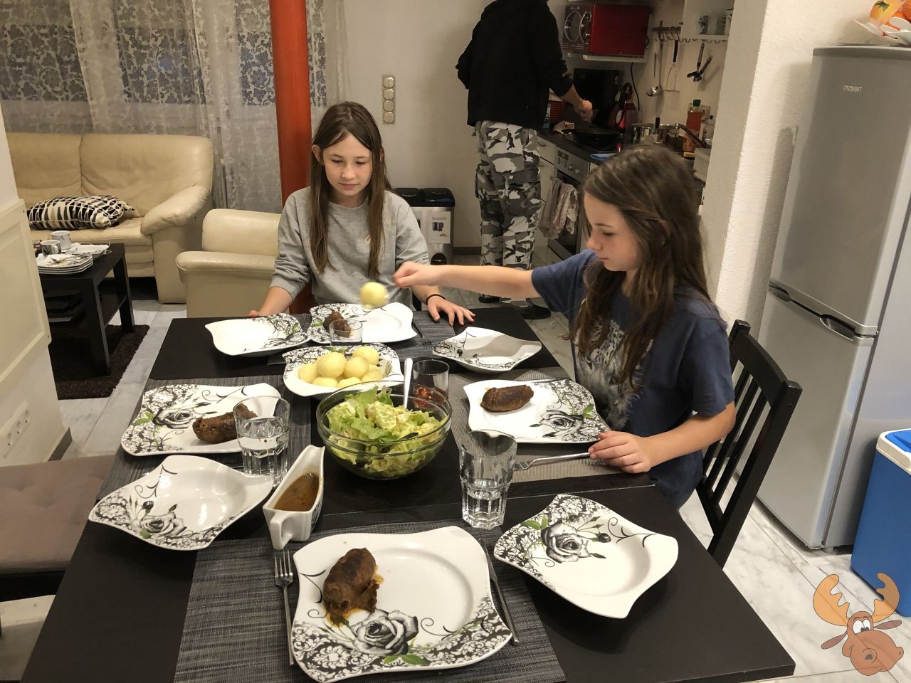 Zum Abendessen gab es Rouladen (danke Omi) Klösse und Salat.