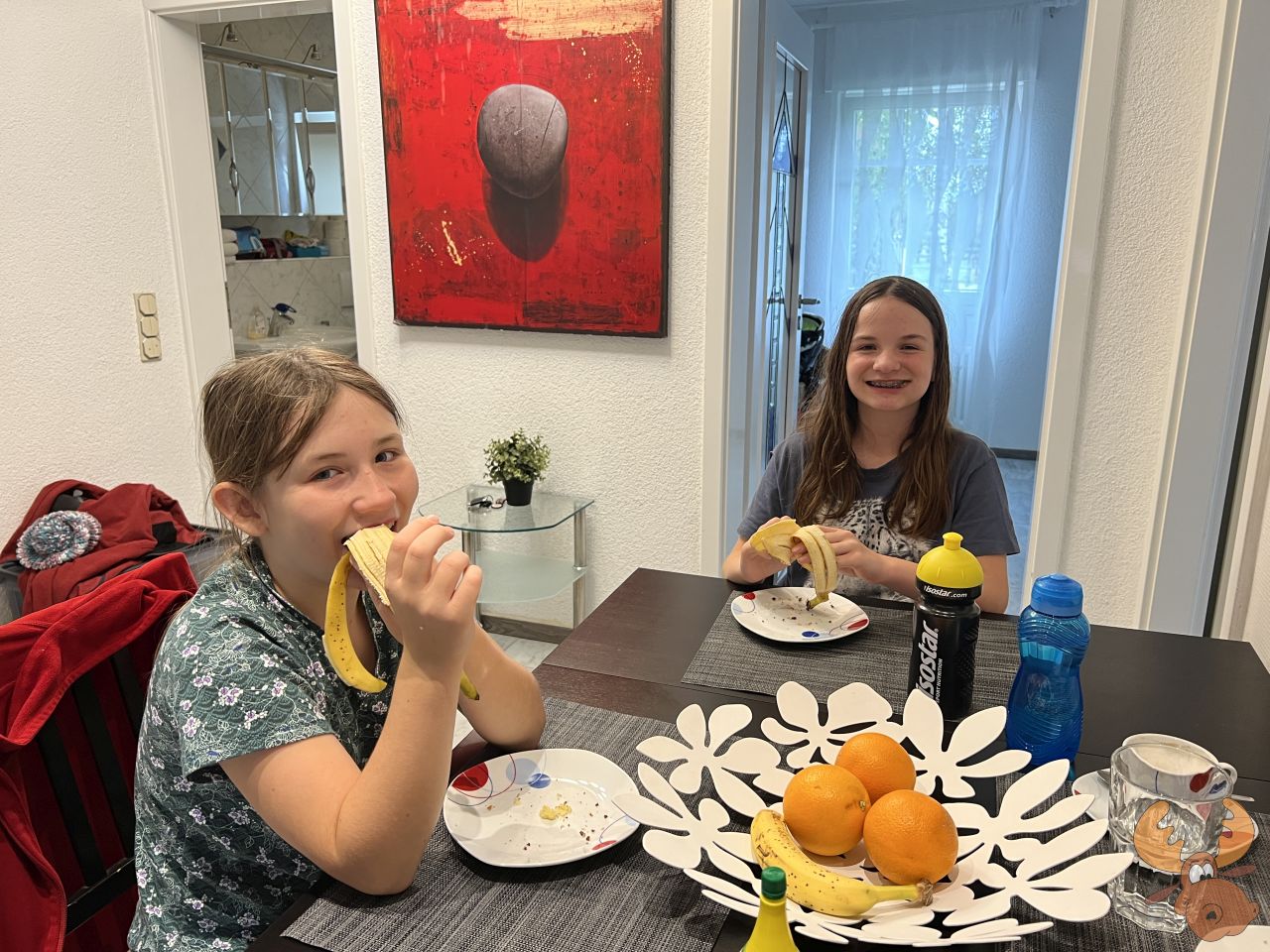 - das müssen wir korrigieren: beim Eingang gibt es einen Storenschalter, aber der macht dann ALLE Storen zu oder auf (damit habe ich am Dienstag die Kinder geweckt …)
