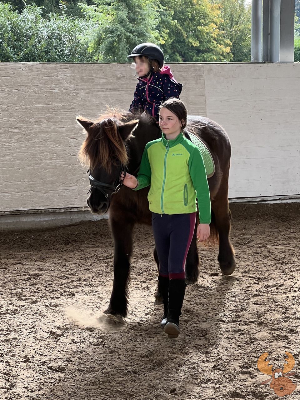 Danach haben Anja und Klara ihre Reitstunde, die mangels anderer Kinder vielleicht etwas kürzer, dafür auch intensive ist.
