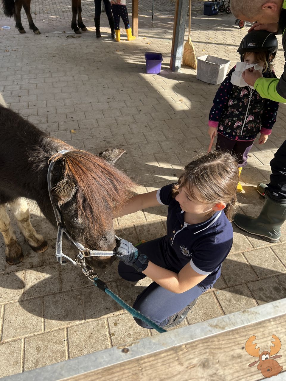 - der Vater der kleineren Kinder, weil er versucht hat sie dazu zu bringen Ponies für seine Kinder zu richten - aber die Zuteilung erfolgt über die Reitlehrerin.