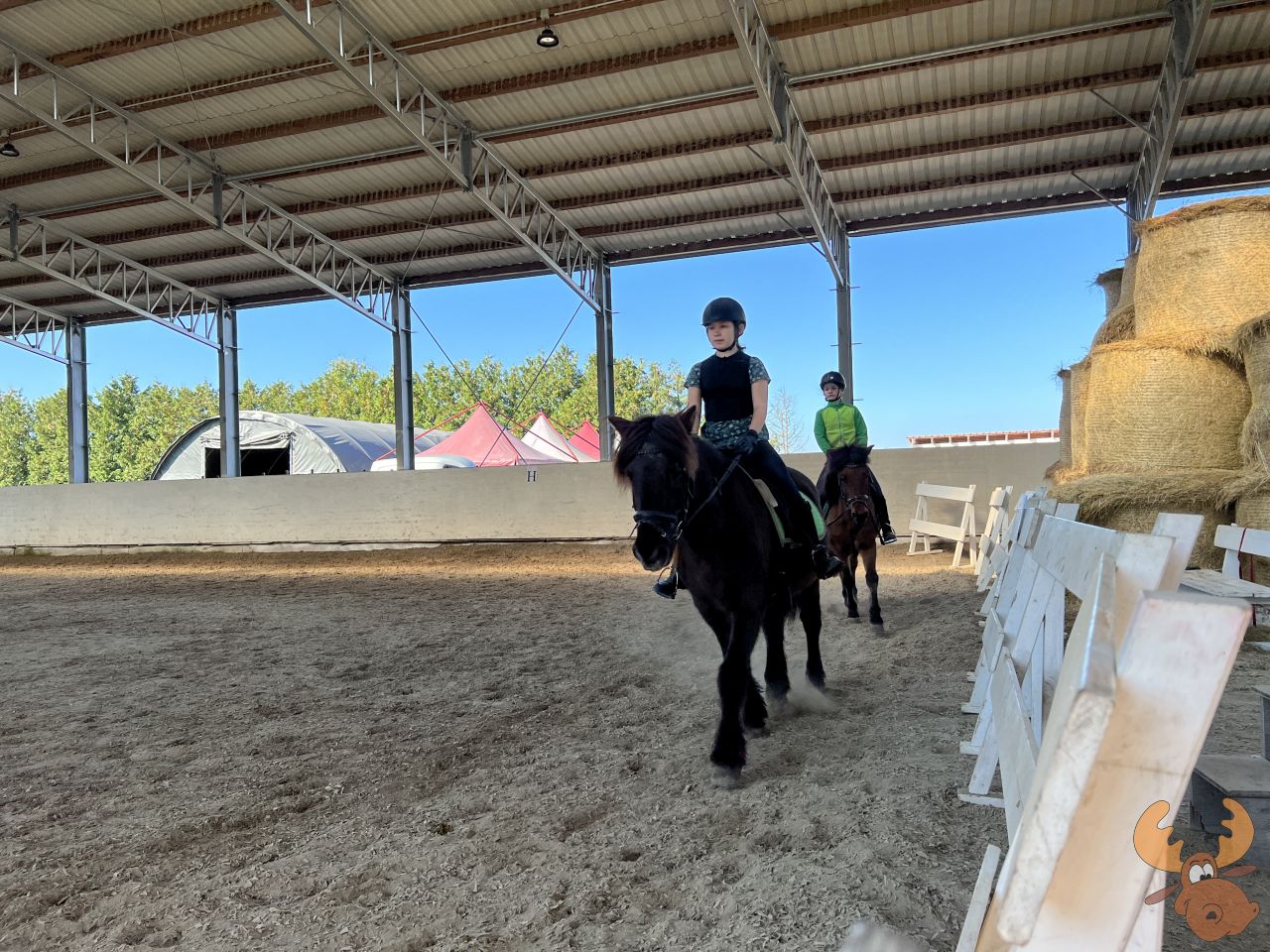 Am Morgen gab es eine Reitstunde mit Alex. Die Kinder waren etwas nervös und die “Generalprobe” lief nicht perfekt. Anskotti wollte immer ganze Bahn laufen obwohl er eigentlich in den Zirkel sollte. Anja war etwas hektisch.