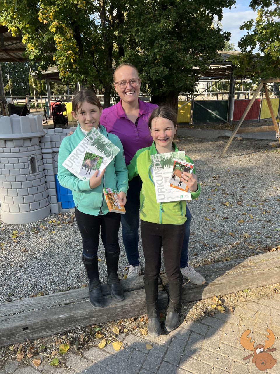 Danach mussten wir lange, lange, lange warten bis wir schlieslich das Ergebns und die Urkunde bekamen. Die Freude war gross, dass “unsere” stolzen Reiterinnen die Prüfung bestanden hatten.