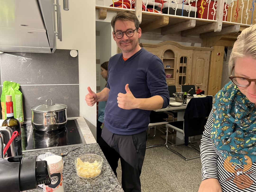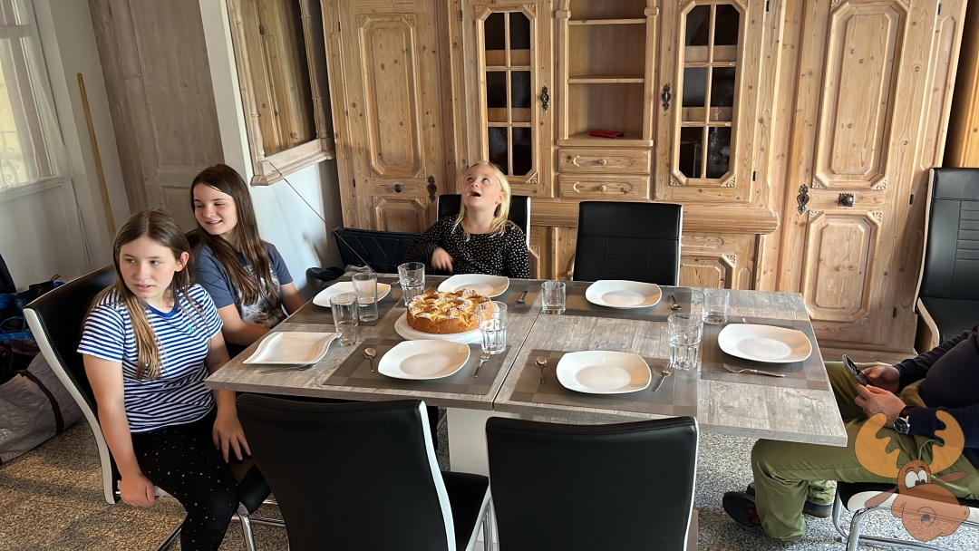Wir hatten die “Villa Kunterbunt” gebucht, die genügend Platz für die Kinder bietet, die zusammen übernachten wollten. Steffi und Christoph hatten die Wohnung “Brunnenblick” gebucht, die direkt daneben liegt (Tür an Tür). Und hier gab es gleich den ersten Ärger: obwohl die Wohnung schon lange gebucht war, war sie plötzlich nicht frei. Mit etwas telefonischem Druck gab es dann den Kompromiss: die erste Nacht übernachteten Glockengiessers bei uns und ab Montag wäre dann die Wohnung frei.