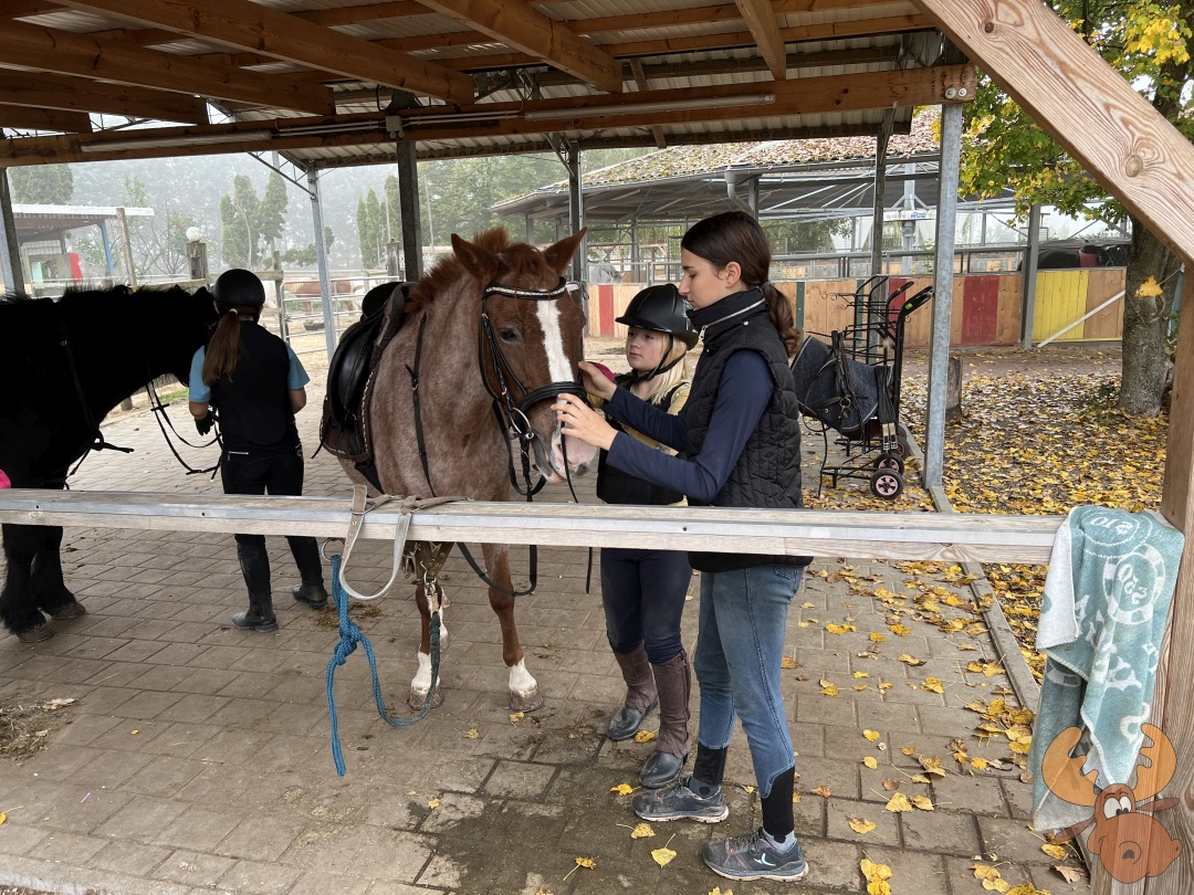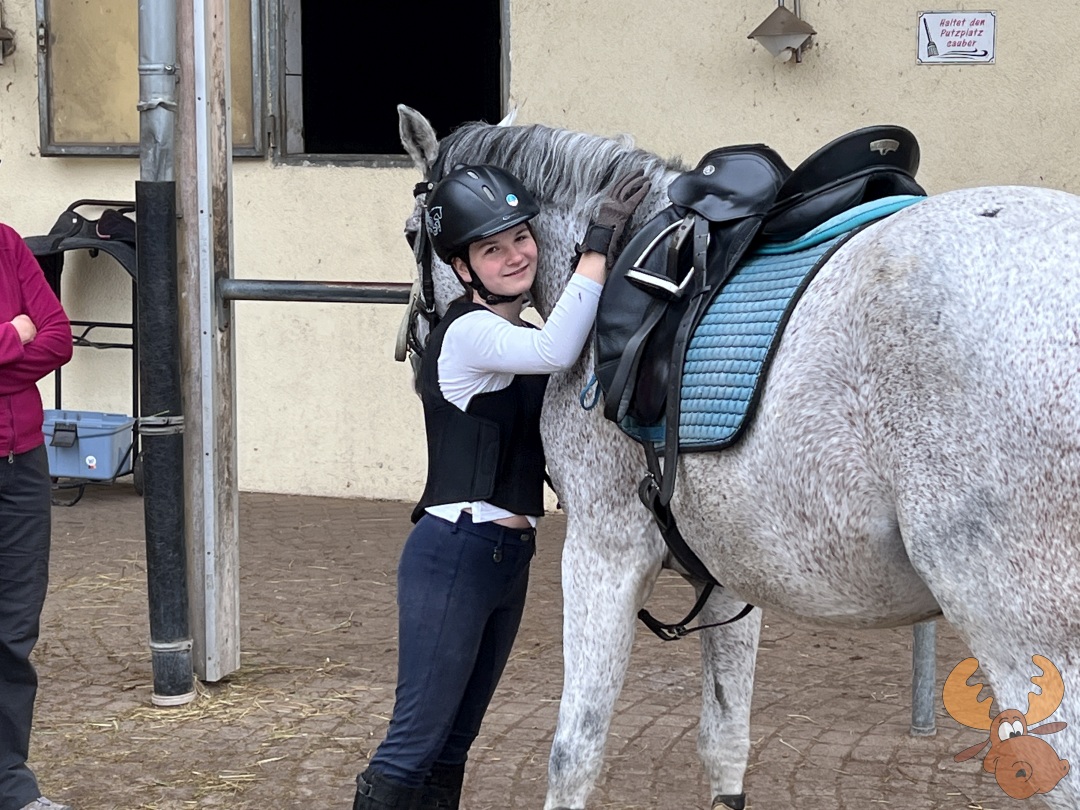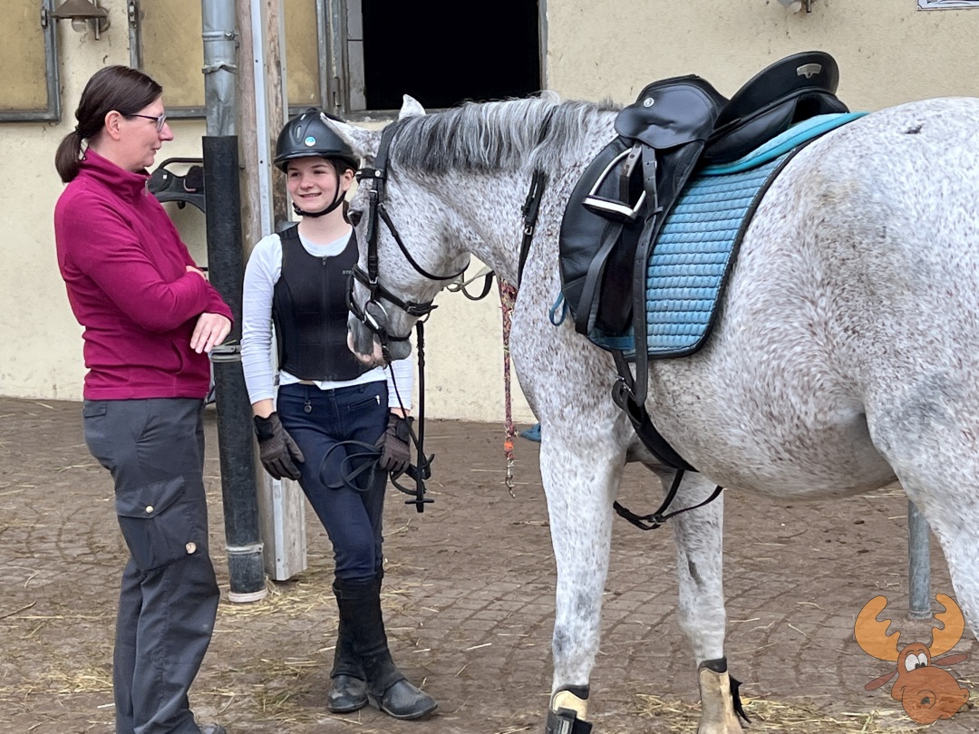 Luzie wurde von Hans-Georg gebissen, Quinni lief Anja unter dem Hintern davon und Klara wurde von Timo gebissen. Reitlehrerin war Melina.
