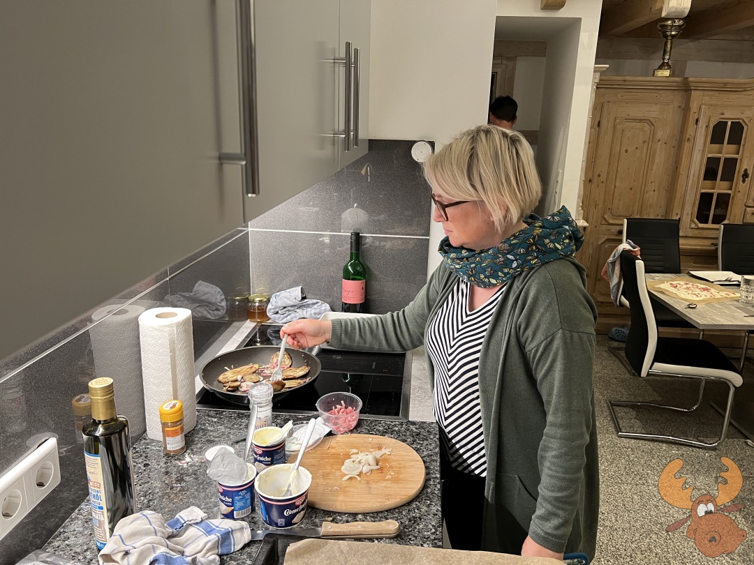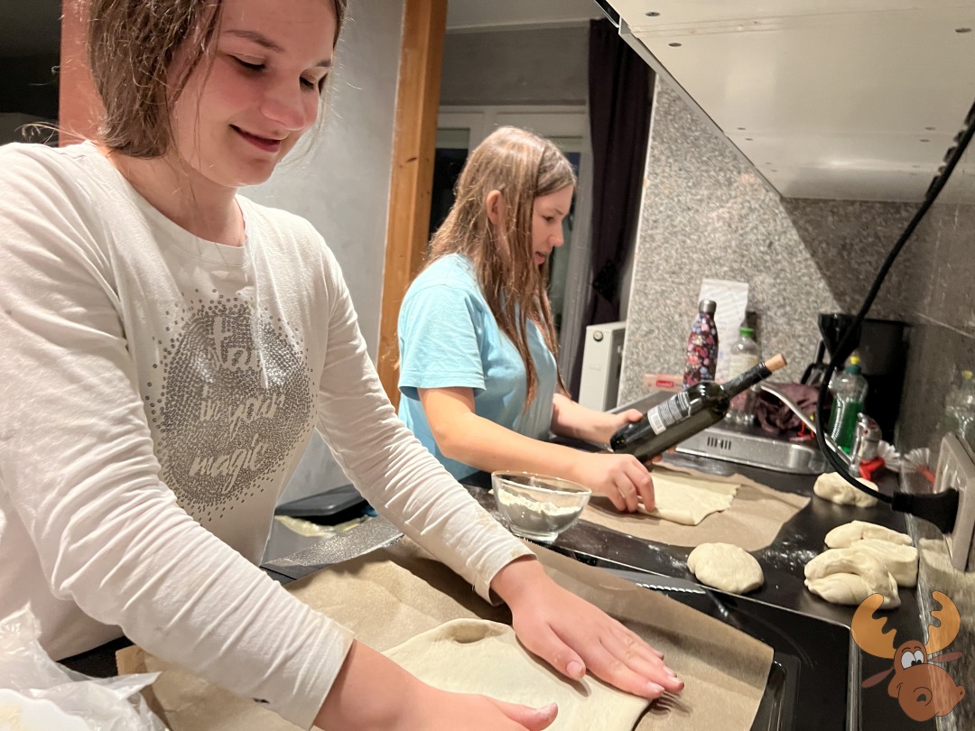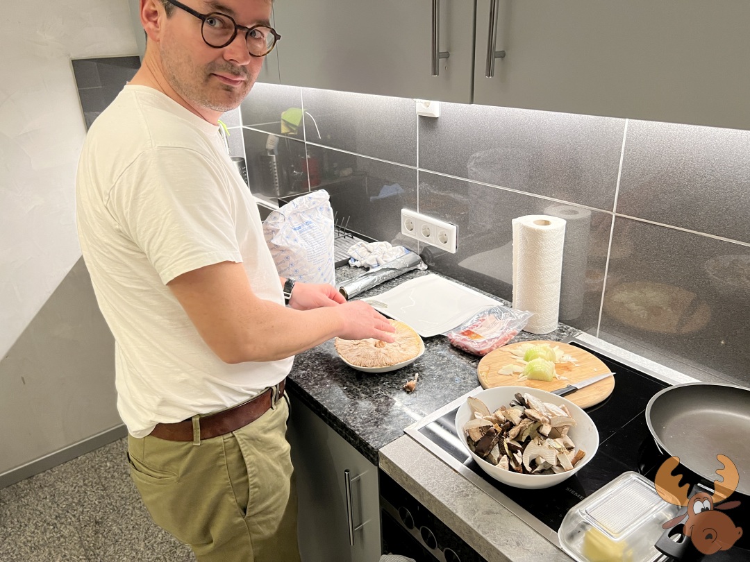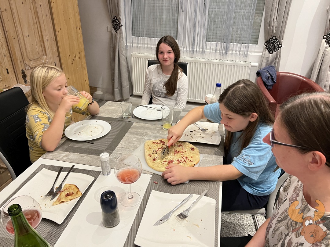 Am Abend gab es die Pilze und die Kinder haben Flammkuchen gemacht.