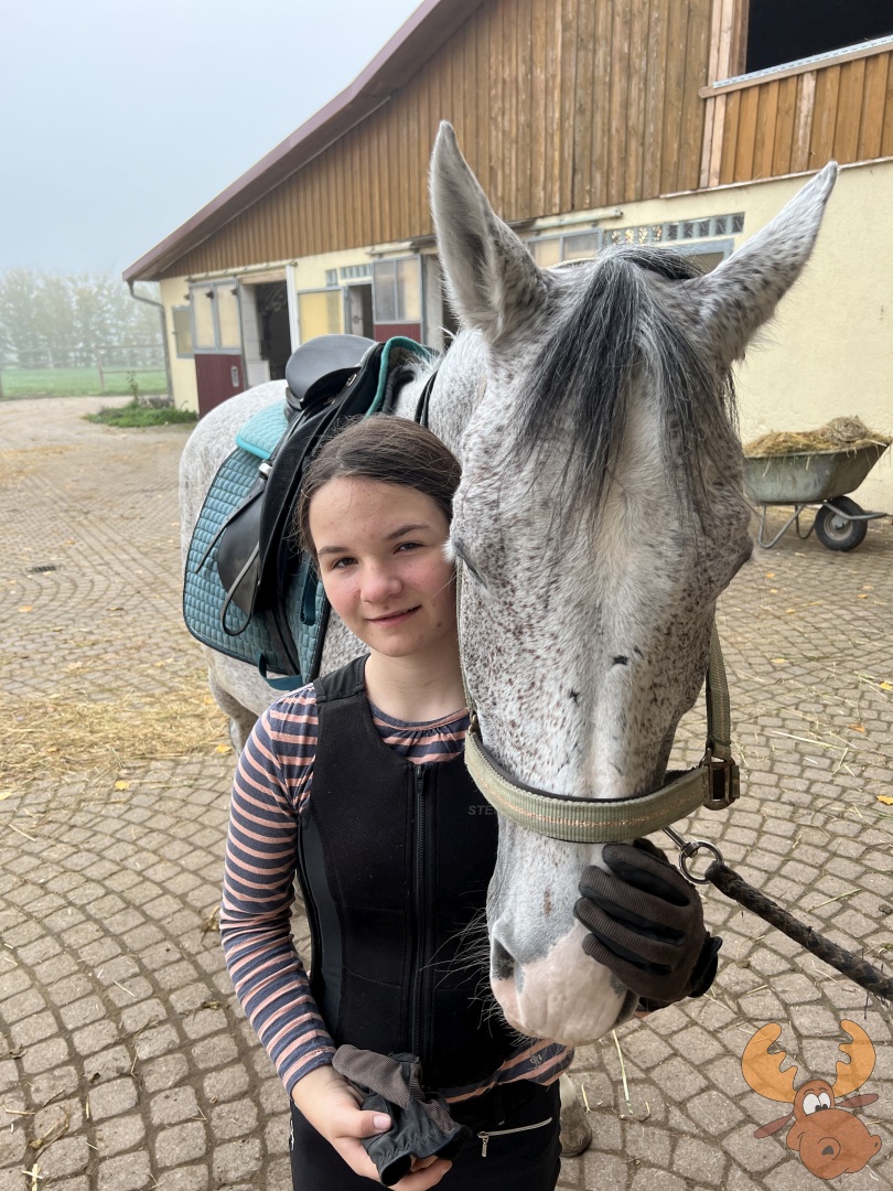 Anja hatte gleich am ersten Tag Extra-Stunde und ritt auf Duni.